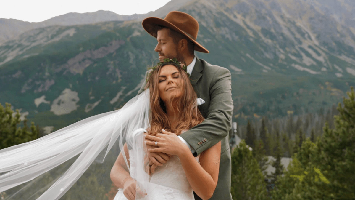 Sesja poślubna obyła się w innym terminie w malowniczych Tatrach. Ich jesienna aura i piękna feeria barw idealnie współgrały z rustykalnym klimatem ubrań i dodatków, które wybrali Młodzi. Tego dnia już pogoda nam tak bardzo nie dopisała, jak w dniu ślubu, ale przecież w każdych warunkach można zrobić piękne ujęcia, czasami po prostu bywa trudniej.